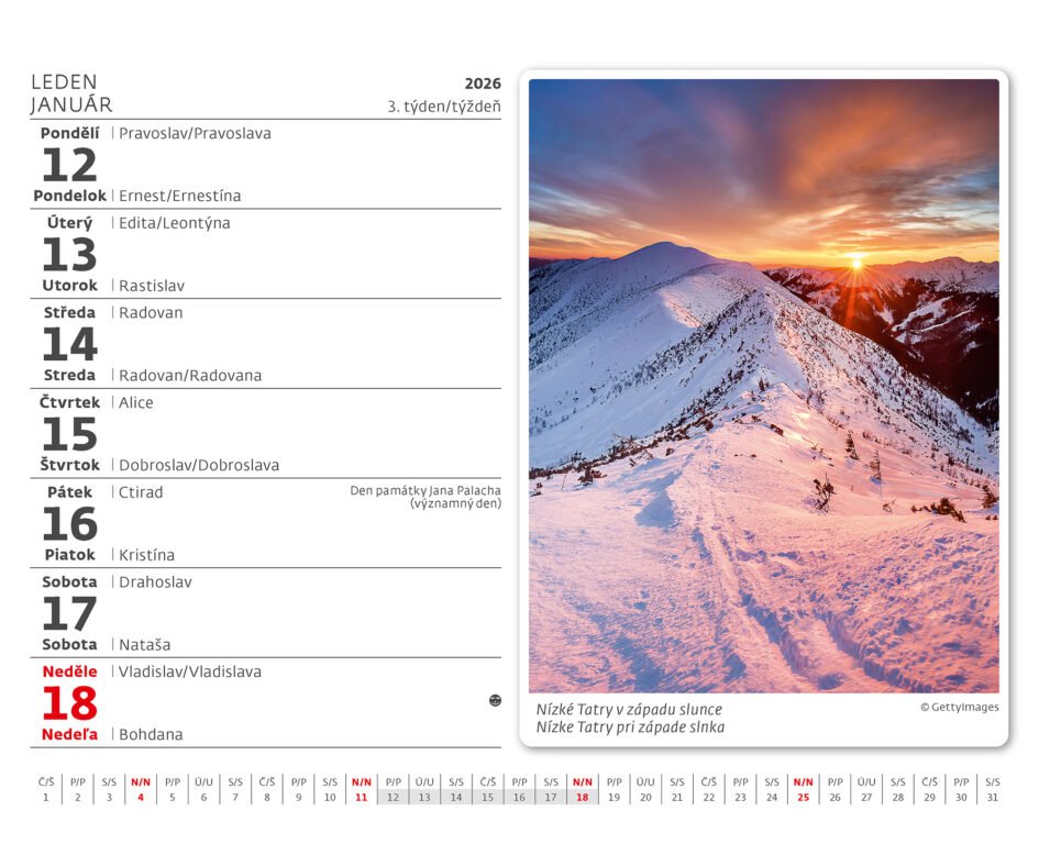 Stolní kalendář MiniMax České a slovenské hory 2026Vyrobeno v ČR