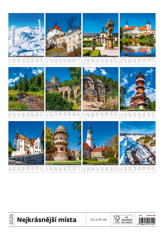 Kalendář Nejkrásnější místa České republiky 2026Vyrobeno v ČR
