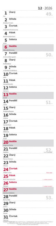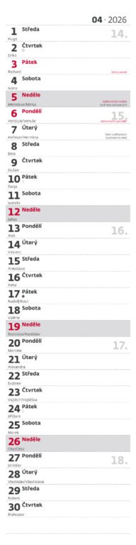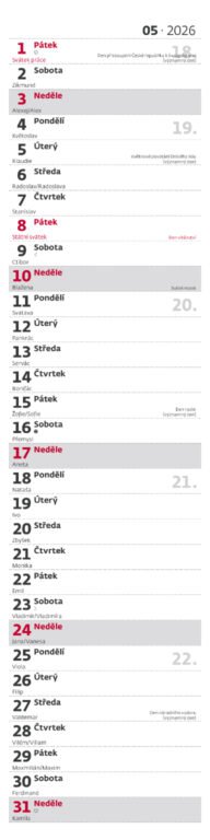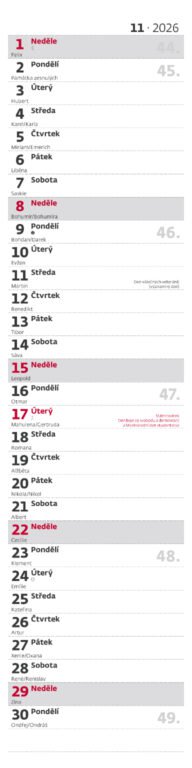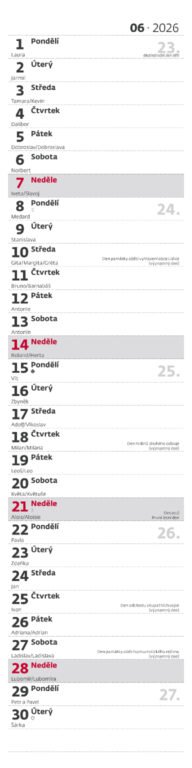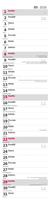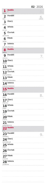 Nástěnný kalendář Poznámková vázanka 2026Vyrobeno v ČR