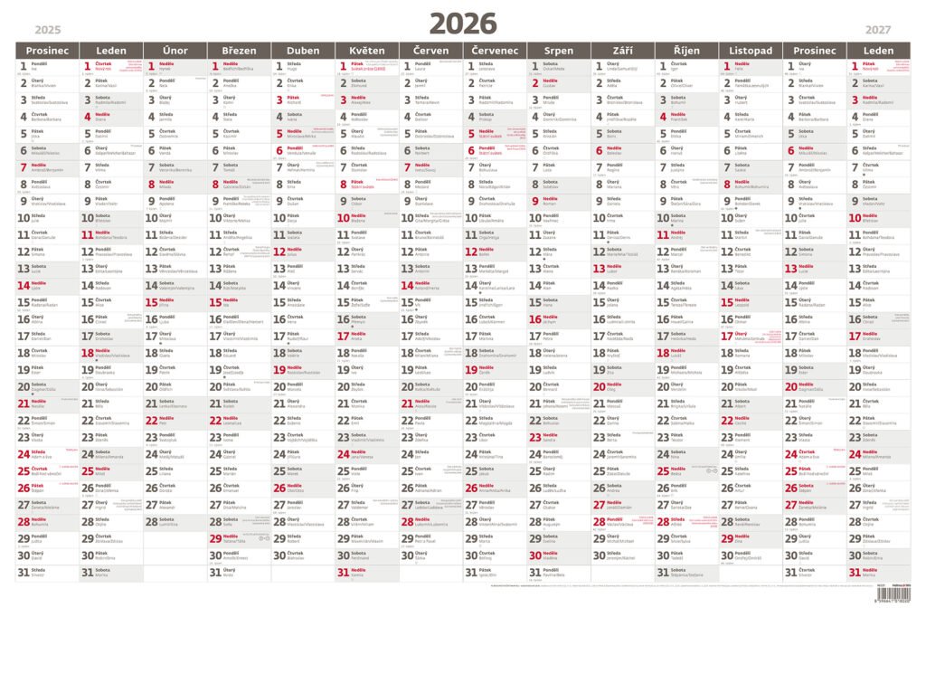 Plánovací roční mapa A1 bezobrázková 2026Vyrobeno v ČR