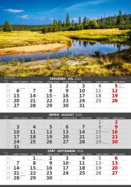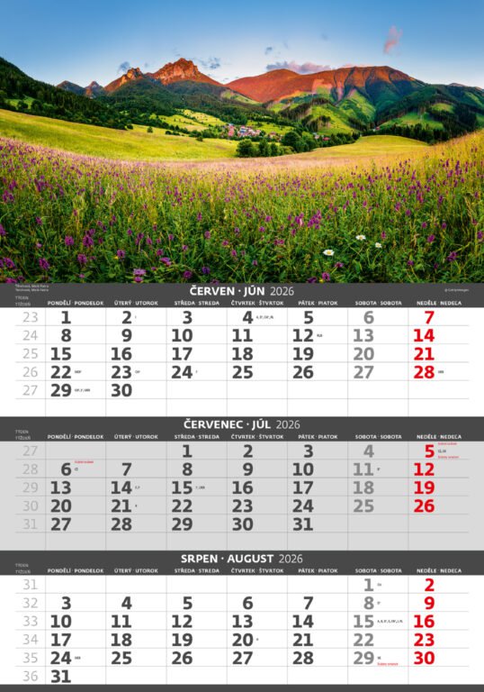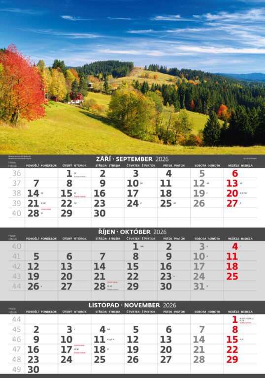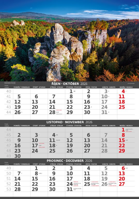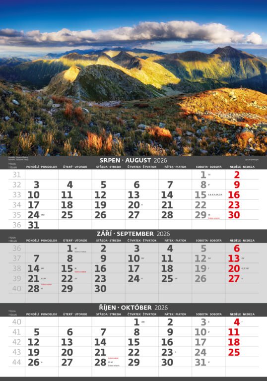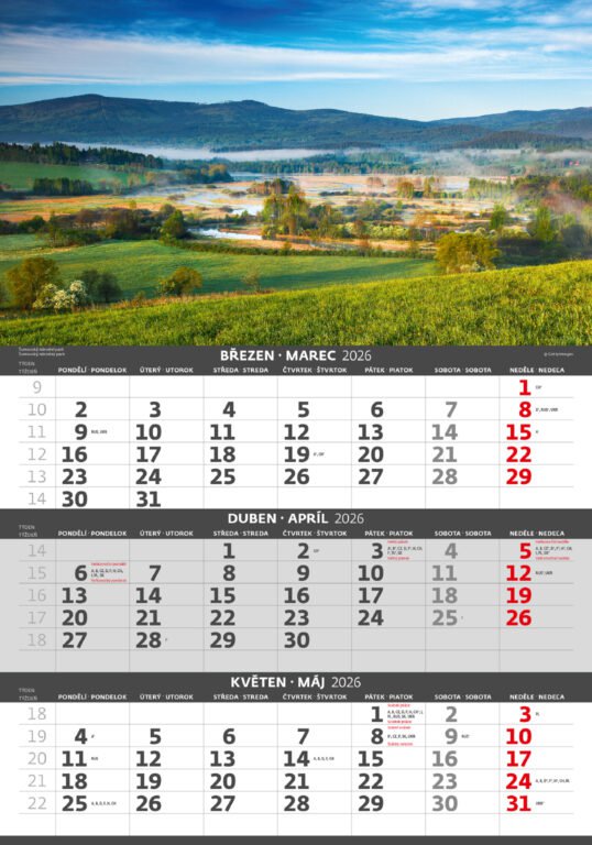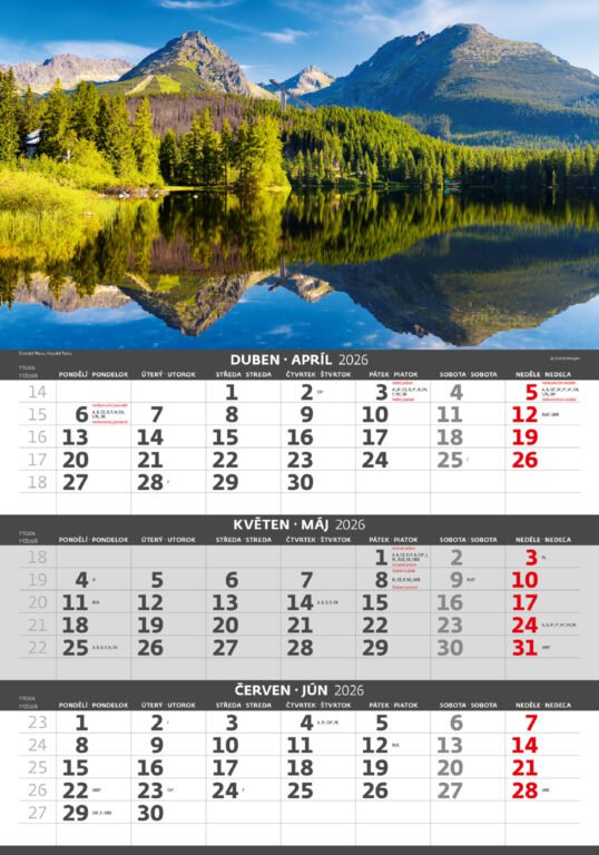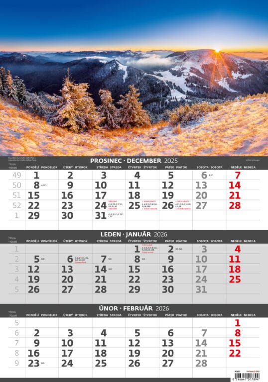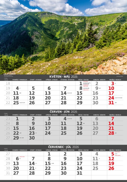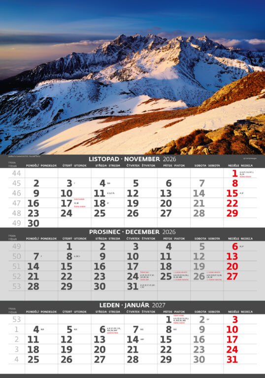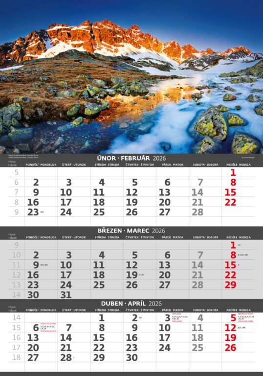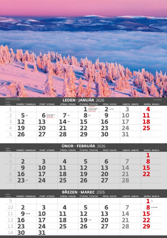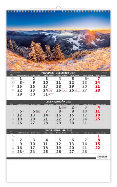 Tříměsíční kalendář Hory 2026Vyrobeno v ČR