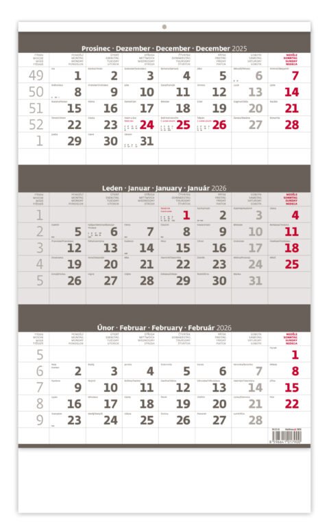 Tříměsíční kalendář šedý 2026Vyrobeno v ČR