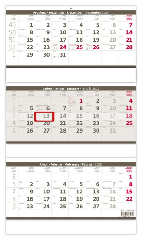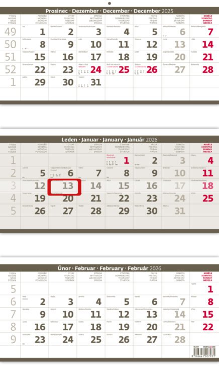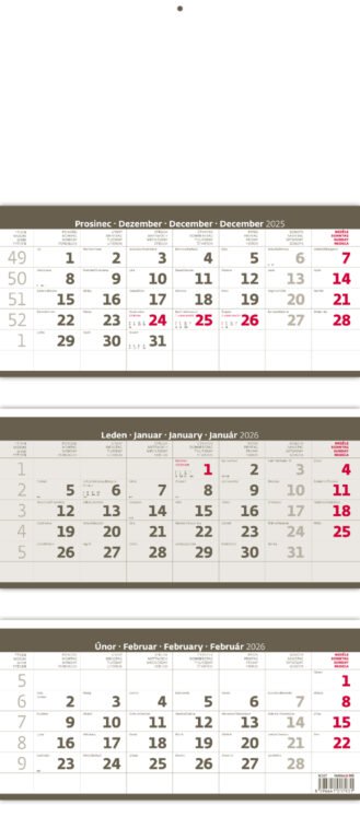 Tříměsíční skládaný kalendář šedý 2026Vyrobeno v ČR